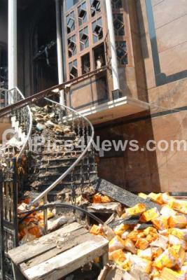 Photo Caption : Burnt items at Anantha Agarbhati Company which had caught fire, in Bengaluru on Sunday 17th April 2016
