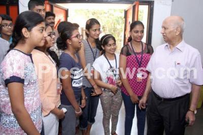 Photo Caption : Prof UR Rao, Former Chairman, ISRO interacting with students at the inauguration of "Space Camp 2016" organised by CINDREBAY NURTURE at IISC, in Bengaluru on Monday 18th April 2016