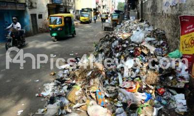 Photo Caption : Garbage dumped on road side at Avenue Road, in Bengaluru on Tuesday 19th April 2016