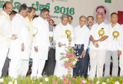 CM Siddharamaiah with Ministers V Sreenivasa Prasad, HS Mahadevaprasad and Dinesh Gundu Rao and others inaugurated the 3 day Agro Tech Expo 2016 at Maharaja College Grounds, in Mysuru on Friday 22nd April 2016