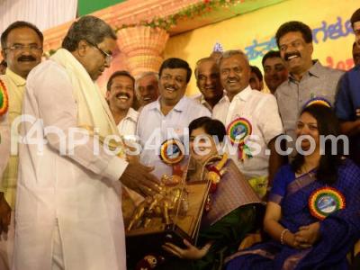 Photo Caption : CM Siddaramaiah with Mayor Manjunath Reddy inaugurated Kempegowda Day Celebration program and presented Kempegowda awards to its recipients at BBMP head Office, in Bengaluru on Friday 22nd April 2016