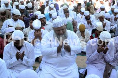 Photo Caption : Muslim community held special prayers for rain at the various Mosques in Bengaluru City, due to the souring high temperatures and shortage of rains, in Bengaluru on Friday 29th April 2016