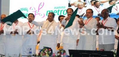 CM Siddaramaiah with Union Parliamentary Affairs and Urban Development Minister M Venkaiah Naidu, Ministers KJ George, Roshan Baig, MP Ananth Kumar and others inaugurated and flagged off the much awaited underground segment of the Namma Metro Purple Line, which connects the Bengaluru city east and west, 2nd Phase of Namma Metro Rail Reach from Cubbon Park Metro to Mysore Road Metro Station in Bengaluru on Friday 29th April 2016