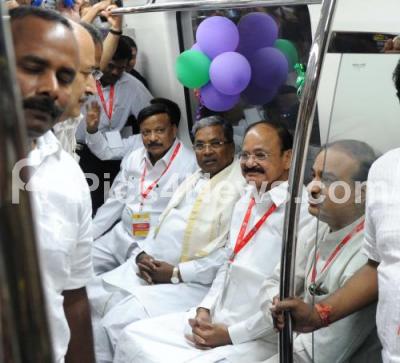 CM Siddaramaiah with Union Parliamentary Affairs and Urban Development Minister M Venkaiah Naidu, Ministers KJ George, Roshan Baig, MP Ananth Kumar and others inaugurated and flagged off the much awaited underground segment of the Namma Metro Purple Line, which connects the Bengaluru city east and west, 2nd Phase of Namma Metro Rail Reach from Cubbon Park Metro to Mysore Road Metro Station in Bengaluru on Friday 29th April 2016