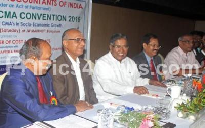 Photo Caption : Rajyasaba Member Rehman Khan with SIRC Member YK Anegundi, KAASIA President VK Deekshit and others at the inauguration of Karnataka CMA convention organized by the Institute of Cost Accountants of India at Hotel JW Marriot, in Bengaluru on Friday 30th April 2016