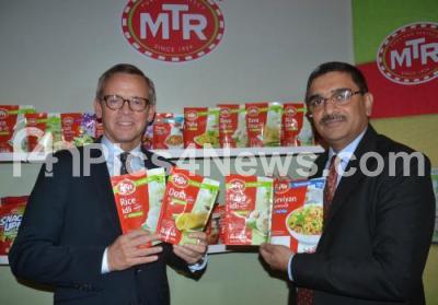 Photo Caption : Sanjay Sharma, CEO MTR Foods with Atle Vidar, Executive Vice President and CEO, Orkla Foods seen at the press conference of MTR foods with an all new brand identity at Hotel Oberoi , in Bengaluru on Tuesday 3rd May 2016