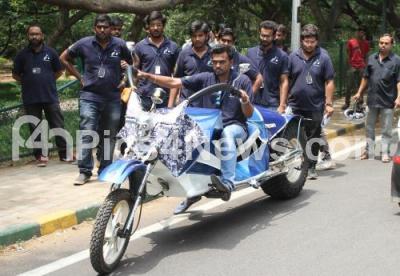 Event Description : Students of Sapthagiri College of Engineering have developed futuristic monster of Motorbike with features like Engine Pulsar 220DTSI, Length 12 feet, Weight 365 Kgs, ground clearance 406 mm, fuel consumption about 18 to 20mpl with tank capacity of 15 liters of fuel, a motor bike with high torque, thrust, designed for good speed, comfort and ergonomically placed, which was designed and executed by students in a record of one month costing around Rs 2,25 lakhs was on display by the student at Press Club, in Bengaluru on Wednesday 4th May 2016