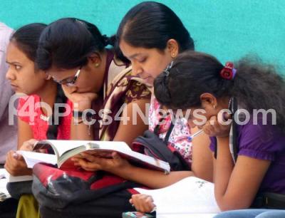 Students preparing for the CET exam at the CET examination centre, in Bengaluru on Wednesday 4th May 2016