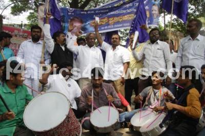 Members of Samatha Sainik Dal staged a protest against the Soma Yaga and its superstitious beliefs at SBM Circle, in Bengaluru on Thursday 5th May 2016