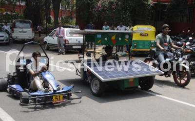 Sairam College Engineering Students showcased their projects Solar Racing Car, Under water Vehicle, Go Kart Car, E Bike for National levels Computations at press Club, in Bengaluru on Friday 6th May 2016