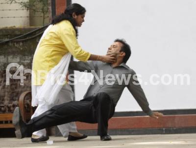 Event Description : Students of Shaolin Lee Kungfu, martial arts school, seen demonstrating self defense martial arts techniques during a press conference at Press Club, in Bengaluru on Friday 6th May 2016