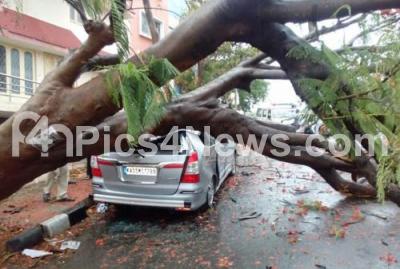 Event Description : A huge tree fell on a car due to heavy rains at Kengeri Satellite Town, in Bengaluru on Friday 6th May 2016