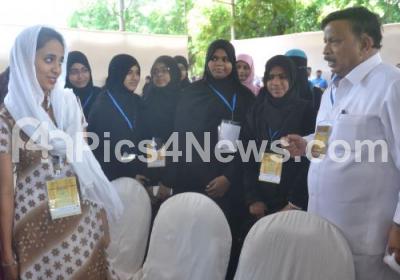 Photo Caption : Minister Roshan Baig seen interacting with the students during the inauguration of the National Unani Medicine Conference and Herbal Mela at Freedom Park, in Bengaluru on Saturday 7th May 2016