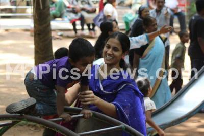 Event Description : Mothers seen playing with their children on the eve of Mothers Day celebration at Cubbon Park, on Saturday 7th May 2016