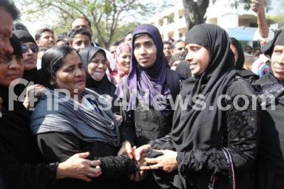 Photo Caption : Nayeema Sultana Nazir Ahmed of JDS, elected as the president of Mysuru Zilla Panchayat is being congratulated by her supporters in Mysuru on Saturday 7th May 2016