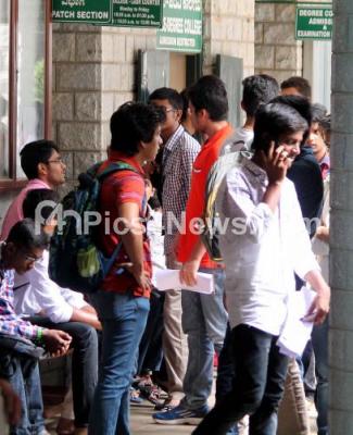 Photo Caption : Students come out after writing the COMEDK exam at MES college, Malleshwaram, the students were made to stay inside the examination centre for more than 6 hours due to technical reasons, in Bengaluru on Sunday 8th May 2016