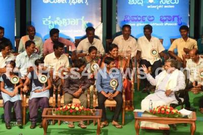 Photo Caption : CM Siddaramaiah seen interacting with the beneficiaries during the Jana Mana programme, in Bengaluru on Friday 13th May 2016