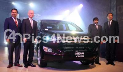 Event Description : Vikram S Kirloskar, Vice Chairman Toyota Kirloskar Motor, Mr Akito Tachibana, Managing Director Toyota Kirloskar Motor, N Raja, Director and Senior Vice President Toyota Kirloskar Motor And Hiroki Nakajima, Managing Officer and Executive Chief Engineer Toyota Motor Corporation launched the new Innova Crysta at Hotel Lalit Ashok, in Bengaluru on Friday 13th May 2016