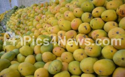 Photo Caption : Mangoes piled during the inauguration of the Mango and Jackfruit Mela at HPCOMS, near Hudson Circle, organised by Horticulture Department, in Bengaluru on Monday 16th May 2016