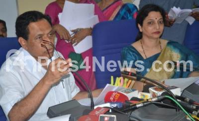 Photo Caption : Minister for Primary And Secondary Education, Kimmane Rathnakar with SSLC Board Director Yashoda Bopanna seen announcing the SSLC results during a press conference at SSLC board at Malleswaram, in Bengaluru on Monday 16th May 2016