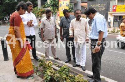 Photo Caption : Mayor Manjunath Reddy seen inspecting the Tender Sure project at Cunningham road, in Bengaluru on Thursday 19th May 2016