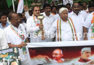 Event Description : Minister HK Patil with members of Bengaluru City IT Cell Congress Committee flagged off the “Rajiv Gandhi Ekatha Yatra” on the occasion of 26th Death Anniversary of Rajiv Gandhi at Anand Rao Circle, in Bengaluru on Saturday 21st May 2016