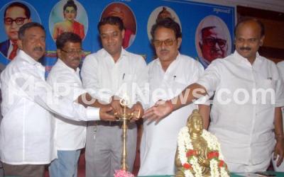 Photo Caption : Dr HR Surendra, Eye Specialist with Former Minister Rajavardhan, Former MLC N Manjunath, P Chaluvaraj and R Lokesh at the inauguration of seminar on “Dalits Political Challenges†organized by Karnataka Madigara Sangha at Gandhi Bhavan, in Bengaluru on Sunday 22nd May 2016