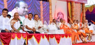 Photo Caption : Union Minister Ananth Kumar with MLA Ravi Subrmanya, MLA Ashwath Narayana, Sri Raghumanya Theerta Sri Padangal, Sri Shatakopa Ramanuja Desikendra Swamiji and Sri Yatiraja Giyar Swami at the "Vishwa Mahotsava" programme organised by Sri Yadugiri Yatiraja Mata at National College Grounds, in Bengaluru on Sunday 22nd May 2016