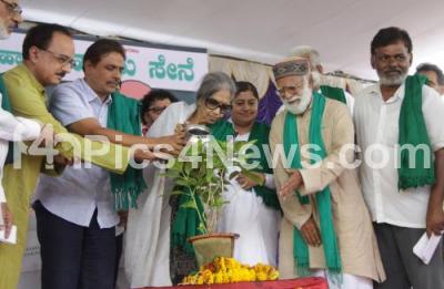 Photo Caption : Tara Gandhi Bhattacharjee, Granddaughter of Mahatma Gandhi is seen with Kodihalli Chandrashekhar, President for Karnataka State Farmers Association, Devindra Sharma, Agriculture Activist, Brahmakumari Bharathi Kampli and others inaugurated the Farmers Conference at National College Grounds, Basavangudi, in Bengaluru on Friday 27th May 2016