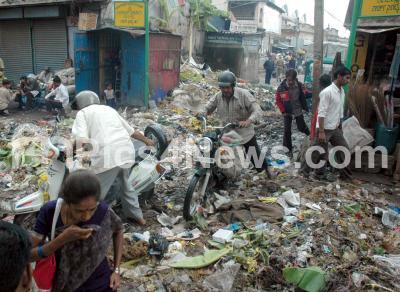 Photo Caption : Ragi Pet, SP Road Cross near Avenue Road filled with garbage, which is still unnoticed by BBMP workers, in Bangalore on Tuesday 23rd Oct 2007 Pics: www.pics4news.com