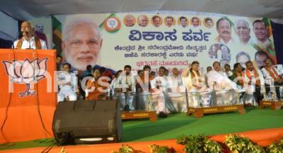 Photo Caption : Former CM and BJP State President BS Yedduyurappa seen addressing the Vikasa Parva rally for the completion of 2years of BJP and Modi government at the Centre, the rally was held at Sirur Park, Malleswaram , in the presence of BJP leaders Venkaiah Naidu, Jayanth Sinha, PC Mohan and other state BJP leaders, in Bengaluru on Friday 27th May 2016