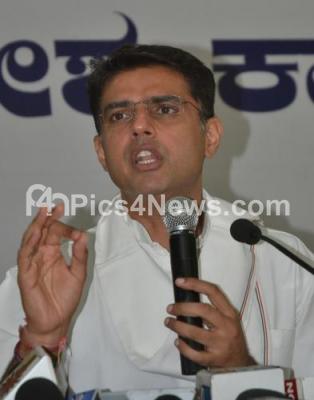 Photo Caption : Congress leader Sachin Pilot seen addressing a press conference at KPCC, in Bengaluru on Saturday 28th May 2016