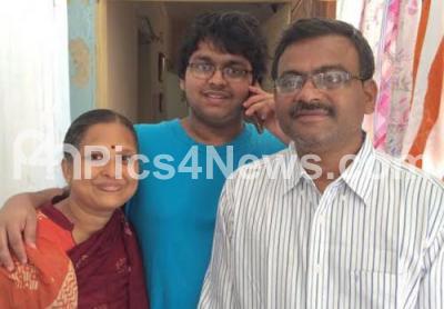 Photo Caption : Milind Kumar Vaddiraju, 1st rank holder for Engineering in CET from VVS Sardarpatel PU College in Basaveshwarnagar in Bangalore, seen celebrating with his parents after the CET results were announced, in Bengaluru on Saturday 28th May 2016