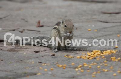 Photo Caption : Squirrel seen enjoying the corn pieces at Central College premises, in Bengaluru on Sunday 29th May 2016