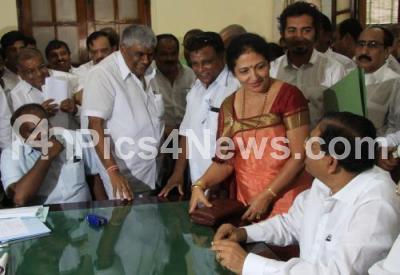 Event Description : Veena Achaiah seen filing her nomination for MLC in the presence of Dr G Parameshwar, KPCC President and Home Minister and other political leaders at Vidhan Soudha, in Bengaluru on Monday 30th May 2016