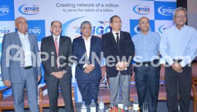 Photo Caption : Nandan Nilekani with Subrata Mitra, Managing Partner, Accel Partners, Shyam Srinivasan, MD, The Federal Bank, Anjani Mandal, Co founder and Chief Executive Officer, Vivek Malhotra, Co founder and Chief of Strategy and Marketing at the press conference of “4TiGO, The Truck Network†at hotel Oberoi , in Bengaluru on Wednesday 1st June 2016