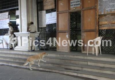 Photo Caption : A dog was entering the Vidhan Soudha premises without any security hassles as the government employees were on one day strike to fulfill their various demands, in Bengaluru on Thursday 2nd June 2016