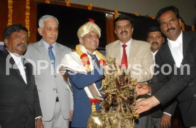 Photo Caption : Justice Ram Mohan Reddy being felicitated during his farewell programme by Justice Abdul Nazeer, HC Shivaramu and others at High Court, organised by Advocates Association Bengaluru , in Bengaluru on Friday 3rd June 2016
