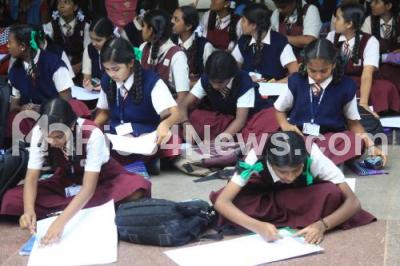 Photo Caption : School children participated in the drawing, painting and essay writing competition to create Swachh Bharat Abhiyan at Freedom Park, organised by BBMP, in Bengaluru on Monday 6th June 2016