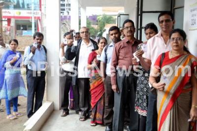Event Description : Voters waiting for their turn to cast their votes at a polling booth for elections to the Karnataka Legislative Council from South Graduates Constituency at a polling booth in Mysuru on Thursday 9th June 2016