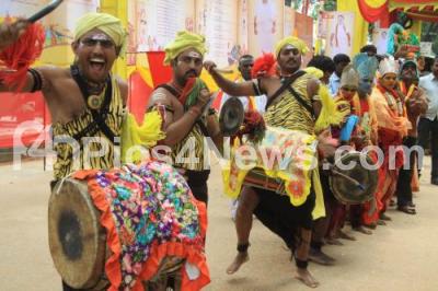 Photo Caption : Cultural artistes performing during the Vishwa Kannadigas Awareness Conference and 50th Birthday Celebration of TA Narayanagowda, president of Karnataka Rakshana Vedike at Gayathri Vihar, Palace Gorunds, organised by Karnataka Rakshana Vedike, in Bengaluru on Friday 10th June 2016