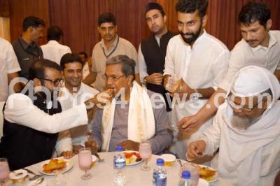 Event Description : CM Siddaramaiah is seen with MLA NA Harris and Muslim religious leaders hosted an Iftar party on the occasion of Holy Month of Ramzan at Hotel Canopy, in Bengaluru on Sunday 12th June 2016
