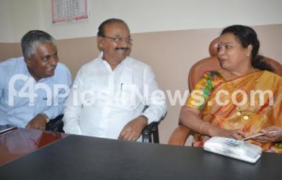 Photo Caption : Minister Umashree seen interacting with Congress members during her visit to KPCC Office, in Bengaluru on Tuesday 14th June 2016