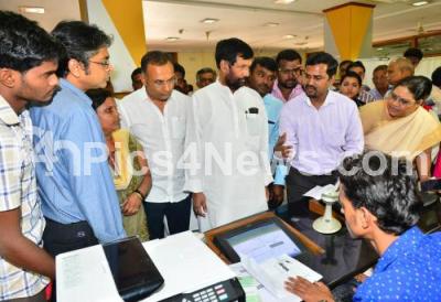 Photo Caption : Ram Vilas Paswan, Union Minister of Food and Public Distribution with Dinesh Gundu Rao, Food and Civil Supplies Minister for Karnataka seen inspecting the Karnataka Food and Civil Supplies Corporation Ltd office at APMC Yard, Yeshwantpur, in Bengaluru on Tuesday 14th June 2016