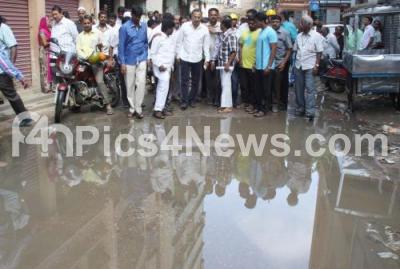 Photo Caption : Minister Dinesh Gundu Rao inspected the rain affected areas in Balepet, as most of the roads are water logged after the recent rains, in Bengaluru on Thursday 16th June 2016