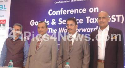 Photo Caption : Justice N Kumar, Judge Karnataka High Court with Shekhar Vishwanathan, CII Karnataka State Council and VC Toyota Kirloskar Motor, G Shivdas Lakshmikumaran, Sridharaa and Abhishek Goenka,Convenor, GST Task Force, CII Karnataka seen at the CII GST Conference, organized by CII at Chancery Pavilion , in Bengaluru on Friday 17th June 2016
