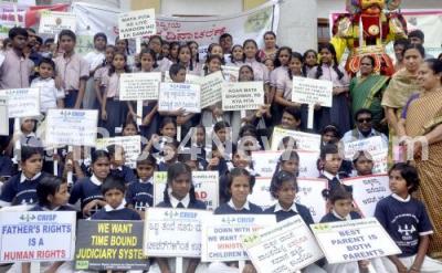 Photo Caption : Members of CRISP with Students participating in International Father Day rally at Town Hall , in Bengaluru on Saturday 18th June 2016