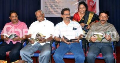 Photo Caption : Book Authors Chandrashekar Aloor with MV Nagaraja Rao, Anjali Ramanna, Santosh Kumar Mehandale and Kalim Ulla at the book release of Kannada books at Indian Institute of World Culture, in Bengaluru on Sunday 19th June 2016