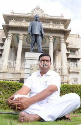 Congress MLA from Mayakonda, K Shivamurthy protesting in front of Kengal Hanumanthaiah statue at Vidhana Soudha, for not being given him Minister post during the new cabinet ministry reshuffle, in Bengaluru on Monday 20th June 2016