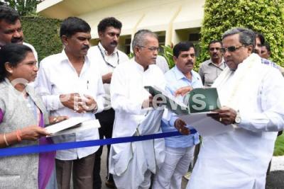 Photo Caption : CM Siddaramaiah seen listening public grievances during the public meeting at Krishna, in Bengaluru on Tuesday 21st June 2016